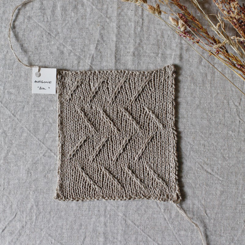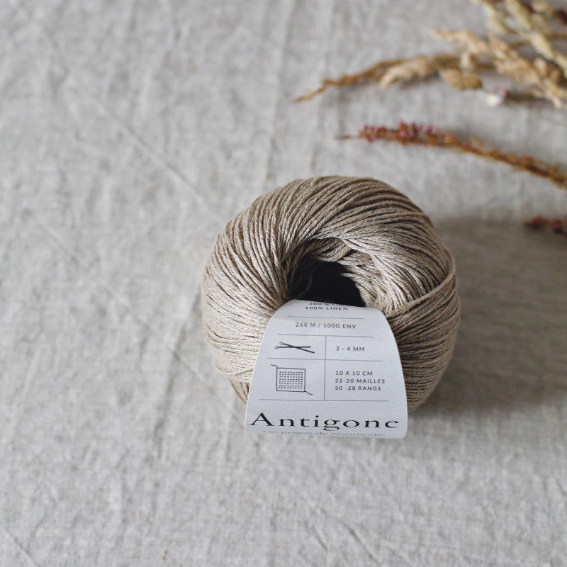 Antigone besteht aus zehn fein versponnenen Kammgarn-Leinenfäden und hat einen glatten, seidigen Griff mit einem wunderbar frischen Tragegefühl. Dieses Garn kann mit feinen Nadeln für ein gleichmäßiges Maschenbild oder locker verstrickt werden, um den natürlichen Fall des Leinens zu betonen – ideal also für eine Vielzahl an Strickprojekten.