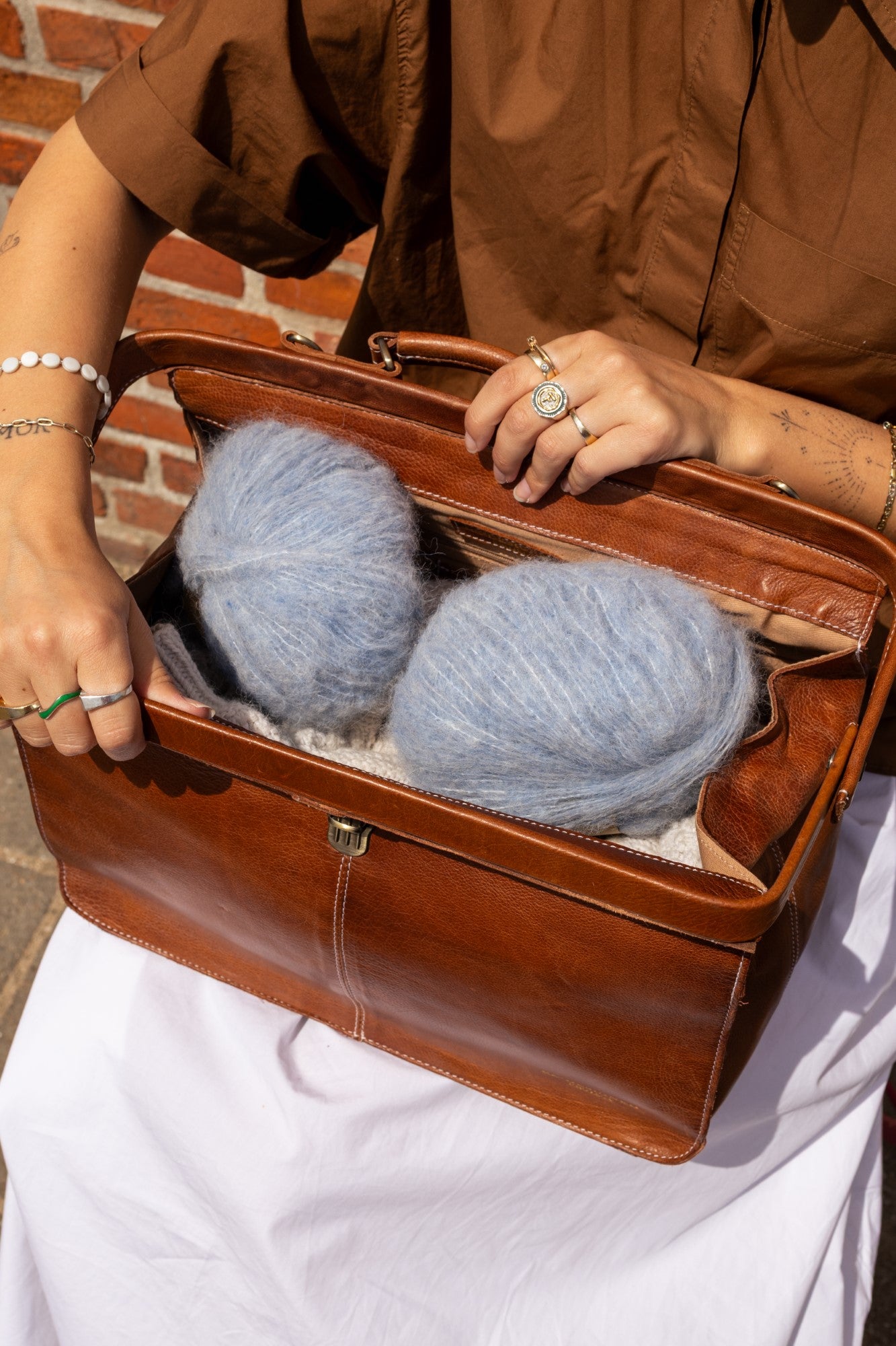 Project 98 ist die perfekte Projekttasche für alle, die ihr Strickprojekt gern überall dabeihaben. Ob auf Reisen, im Café oder beim Stricktreff – diese Tasche vereint durchdachte Funktionalität mit stilvollem Design.